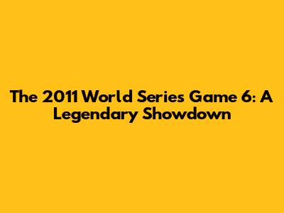 2011 World Series Game 6: A Thrilling Play-by-Play