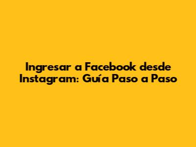 Ingresar A Facebook Desde Instagram: Guía Paso A Paso