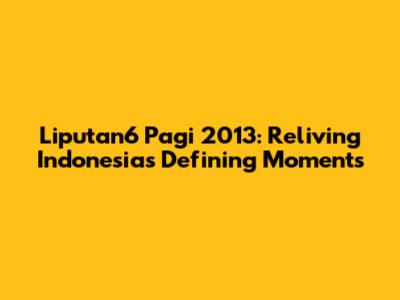 Hey guys! Let's take a trip down memory lane and revisit Liputan6 Pagi 2013. For those of you who might not know, Liputan6 Pagi was a super popular morning news program in Indonesia, broadcasted on SCTV. This show was the place to get your daily dose of news, and 2013 was a year packed with significant events. So, grab a coffee (or your favorite morning beverage) and let's dive into the key headlines, memorable moments, and the overall impact of Liputan6 Pagi during that year. We'll explore the main topics covered, the stories that grabbed everyone's attention, and how this program shaped the way Indonesians received their news. It's like a time capsule, offering a glimpse into the country's social, political, and economic landscape back then. It's fascinating to see what was considered front-page news and how it resonates with us today. It wasn't just about reading the news; it was about the way these stories were presented and discussed that made the program so appealing, starting your day with the nation's most pressing issues. This show was a staple for many, shaping opinions and sparking conversations. Let's see what made this program a national favorite.