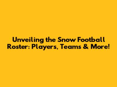Unveiling The Snow Football Roster: Players, Teams & More!