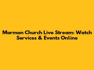 Watch Mormon Church Live Stream: Services & Events